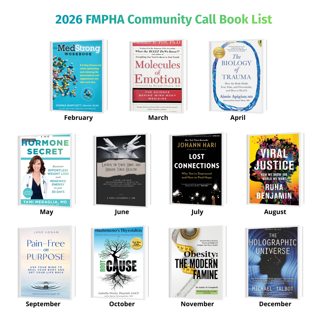 The goal for these calls is to invigorate our community, share about exciting work happening in the field of functional medicine, and network with others passionate about functional medicine! Pharmacists, medical professionals, and functional medicine practitioners are all welcome to join. We choose a book of the month to help shape our discussion, which you can find in our virtual Book Store. While these are designed to be an interactive experience, we do record them and send out the replays to all who register.